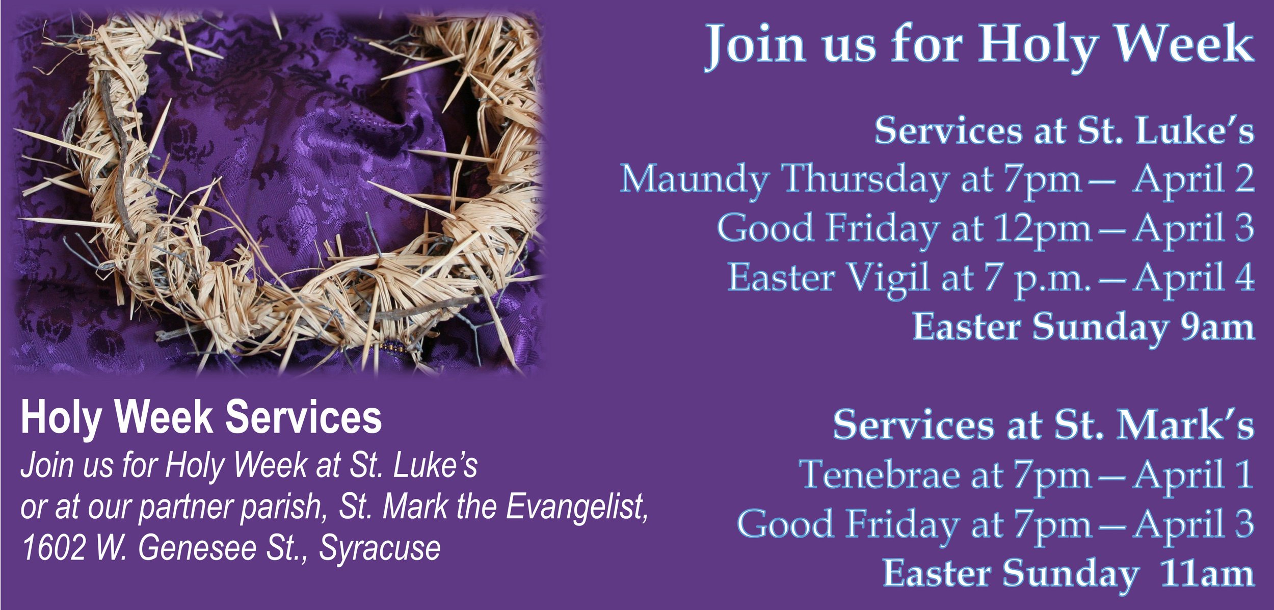 Join us during Season of Lent and Easter at St. Luke’s & St. Mark the Evangelist